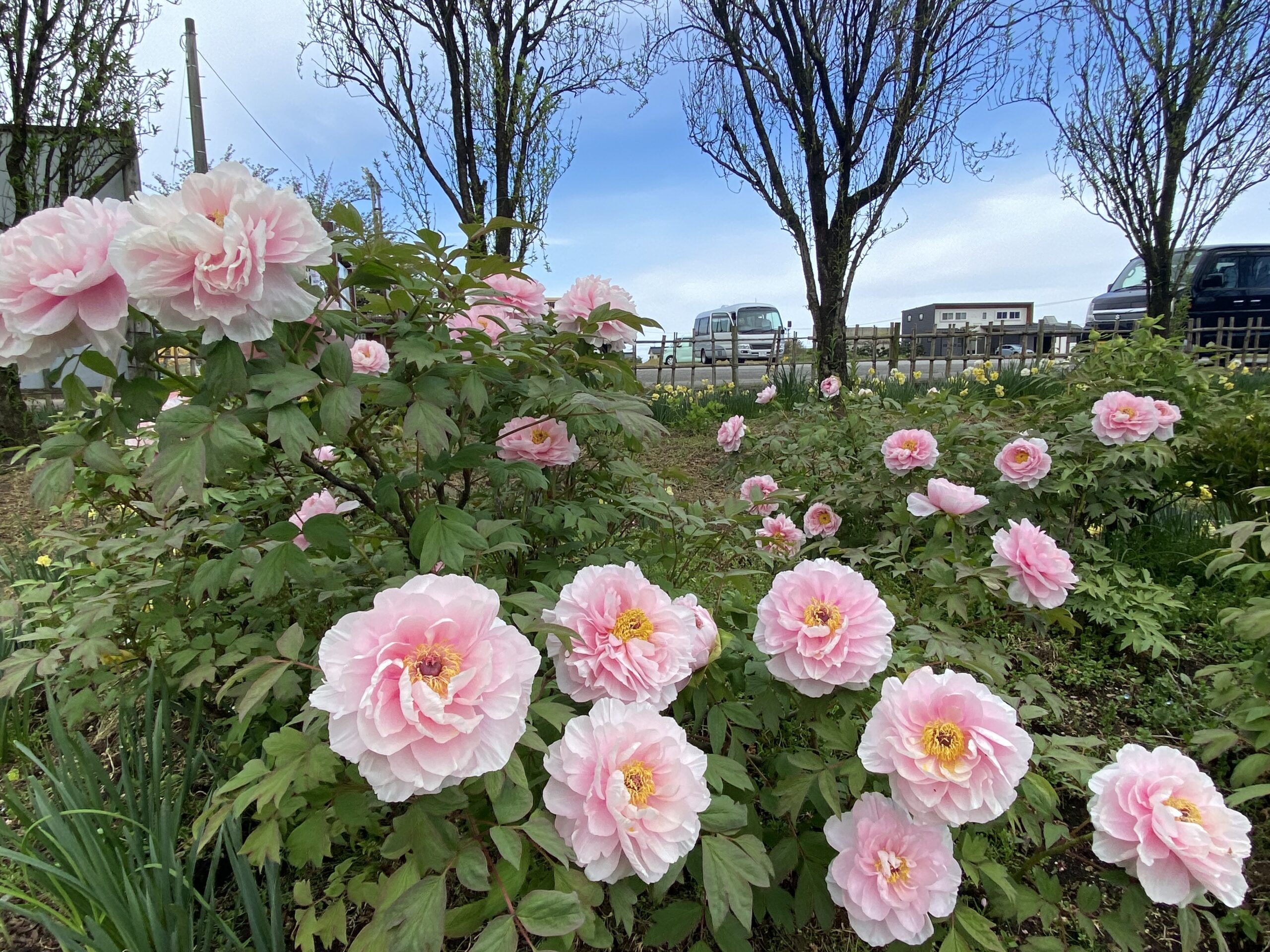 その周辺には、早咲きのボタンが咲き始めてきました。暖かい日が続きそうなので、こちらも一気に開花が進み、GWの初め頃までは楽しめそうです。