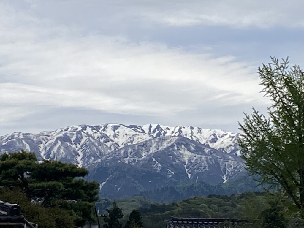 また、ガーデンへ向かう道中から見える僧ヶ岳は、残雪で縁取られた山肌や残雪がさまざまな模様を作る雪絵がくっきりと見え、立山連峰の素晴らしさを感じます。
