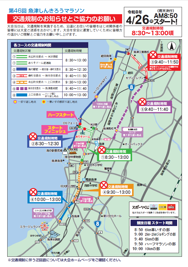 home イベント&ニュース 交通規制のご案内/4月26日(日)魚津しんきろうマラソン開催