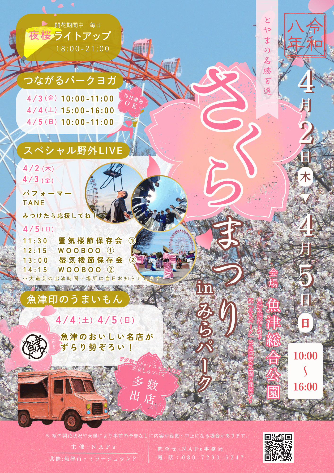 この春は、ぜひ家族や友達と一緒に「さくらまつりinみらパーク」でウキウキワクワクの一日をお楽しみください!